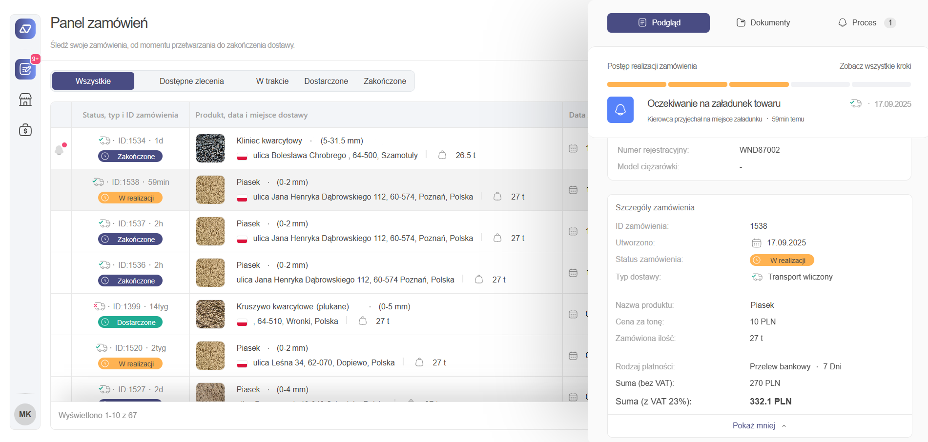 Dzięki nowoczesnym technologiom cyfrowym oferujemy jedną platformę do zamawiania, sprzedaży i transportu kruszyw.