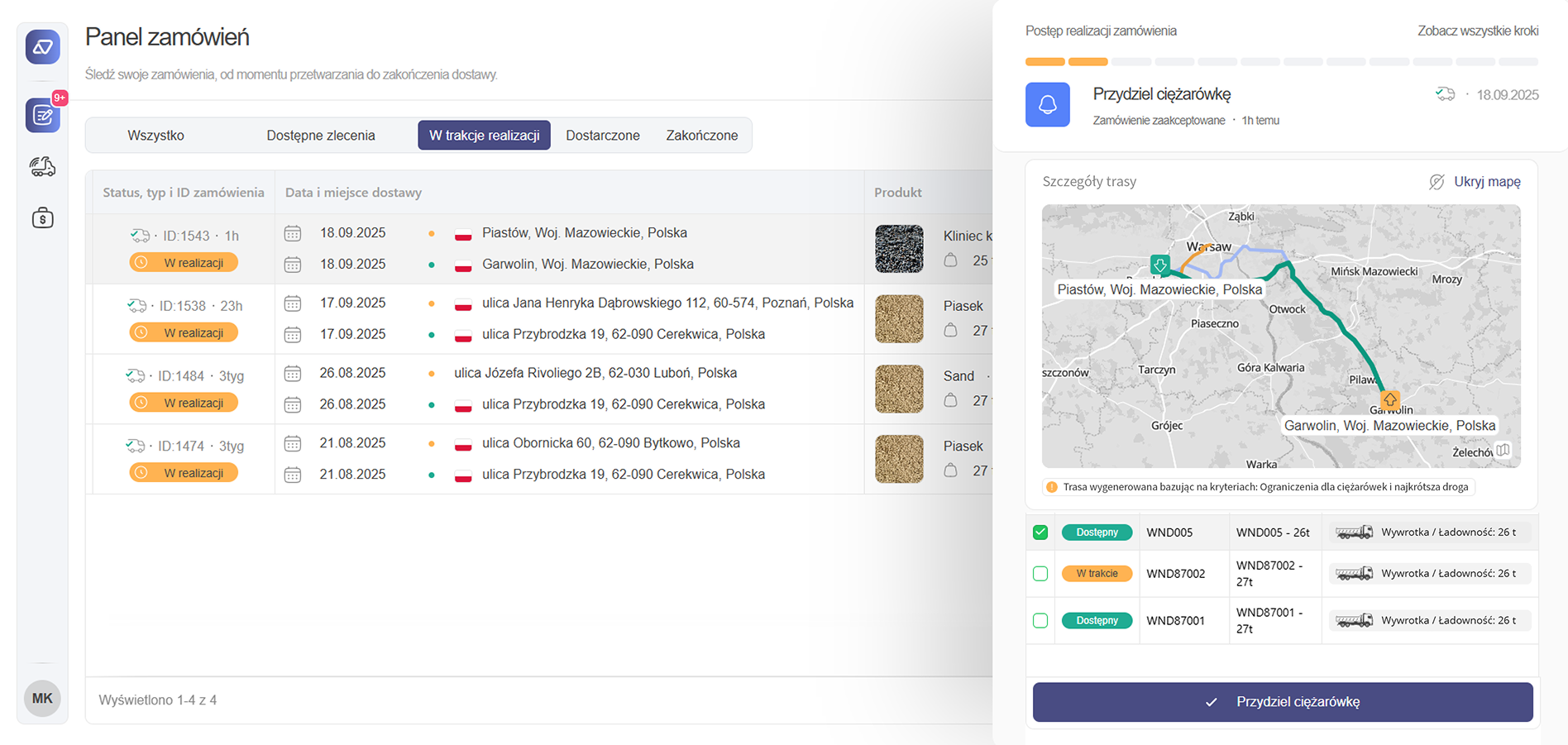 Przyjmuj zlecenia i monitoruj transport